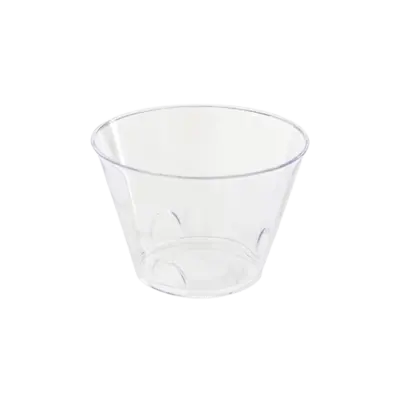 Ekskluzywna, przezroczysta miseczka do przekąsek i mini-deserów z prestiżowej linii TULIP3. Wykonany z grubego, sztywnego polistyrenu (PS), perfekcyjnie imituje prawdziwe szkło, będąc jednocześnie lekkim i bezpiecznym (nietłukącym się) rozwiązaniem na eventy, wesela i słodkie stoły.